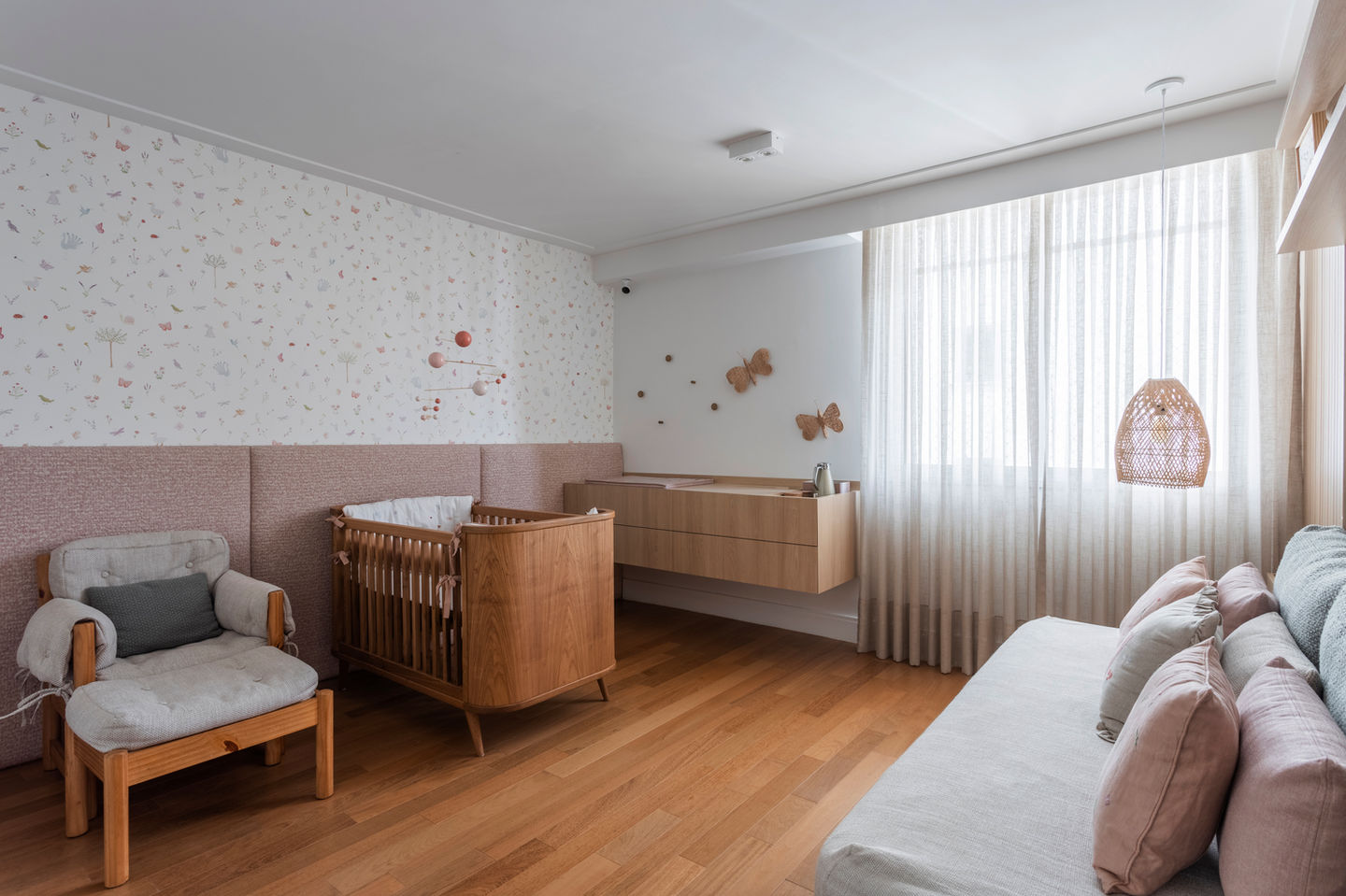 Este papel foi desenvolvido a partir de desenhos originais em aquarela inspirados nos animais, nas folhagens e flores da floresta. Com desenhos bem delicados, ele traz o bosque para dentro do quarto de maneira bem suave e ao mesmo tempo alegre.